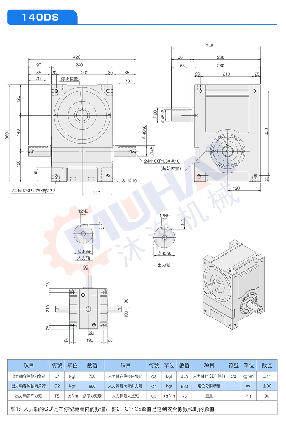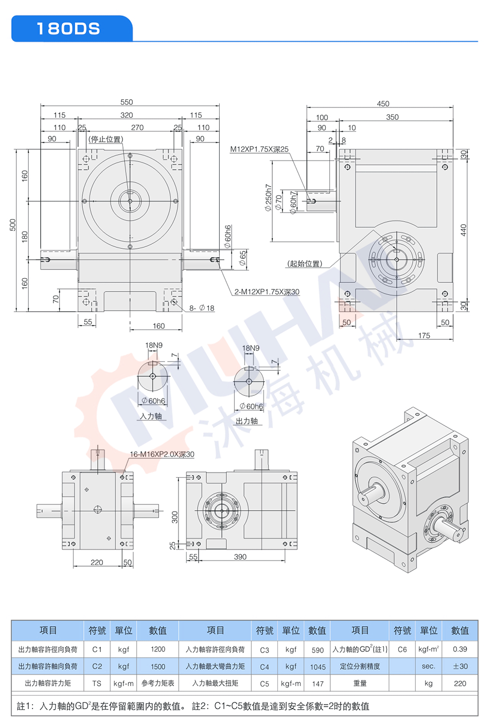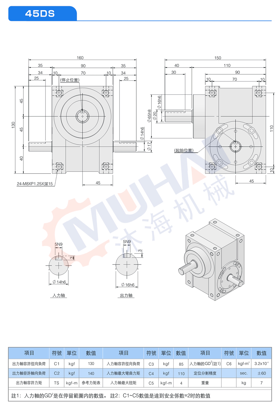 此系列機種為典型傳統式心軸造型,其安裝配件之加工安裝配合齒輪、聯軸器或聯軸盤,需特別注意孔徑公差(+0.015/-0)及鍵槽公差(+0.05/-0),其使用場合在輸送帶驅動、齒輪驅動、無間隙聯軸器結合驅動居多。