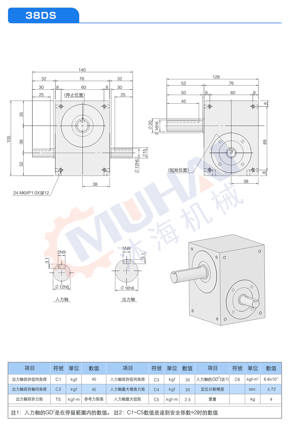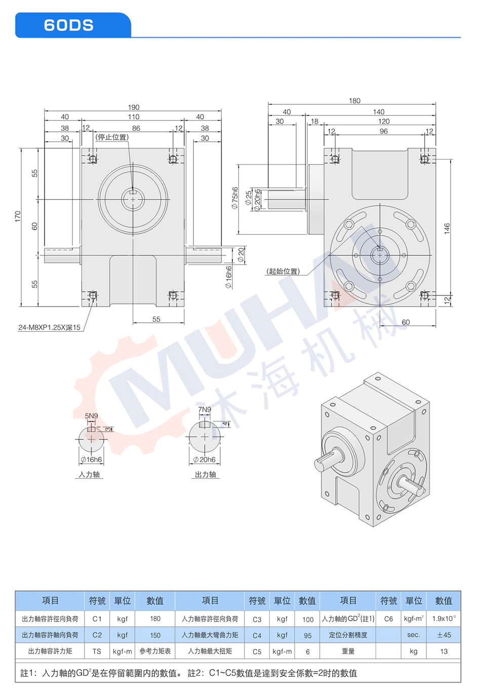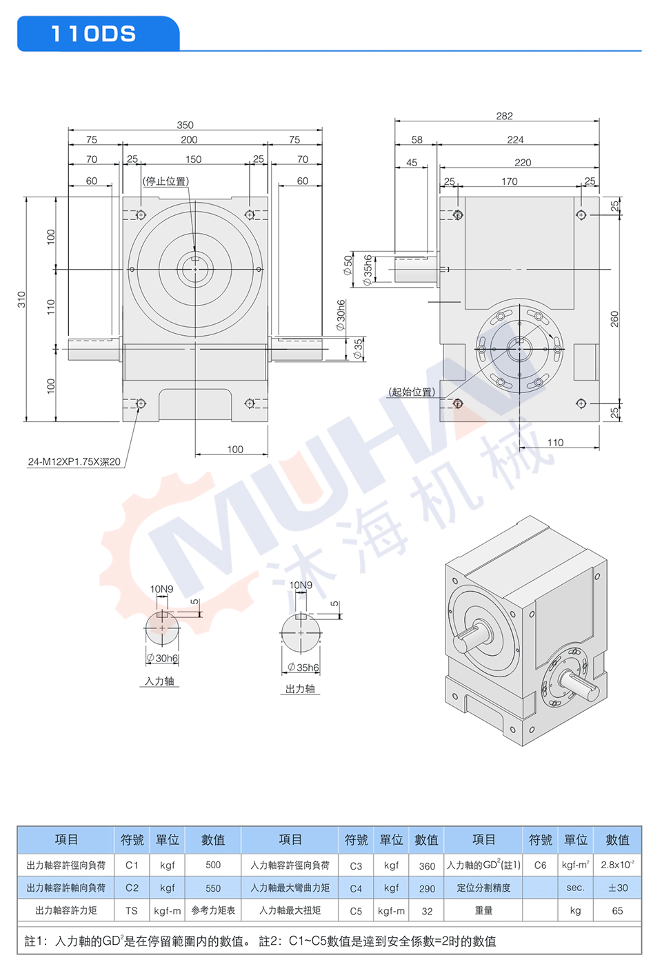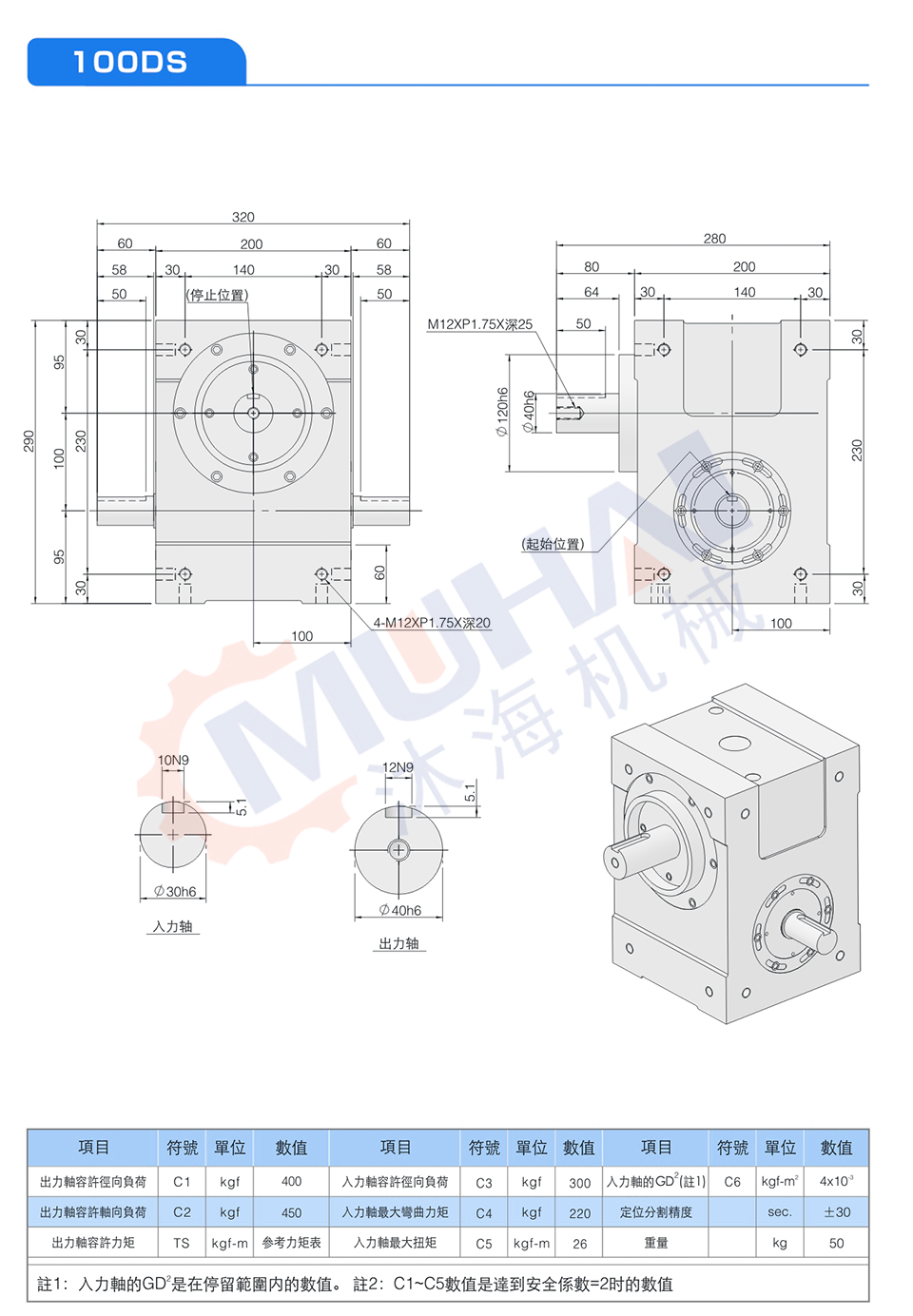 此系列機種為典型傳統式心軸造型,其安裝配件之加工安裝配合齒輪、聯軸器或聯軸盤,需特別注意孔徑公差(+0.015/-0)及鍵槽公差(+0.05/-0),其使用場合在輸送帶驅動、齒輪驅動、無間隙聯軸器結合驅動居多。